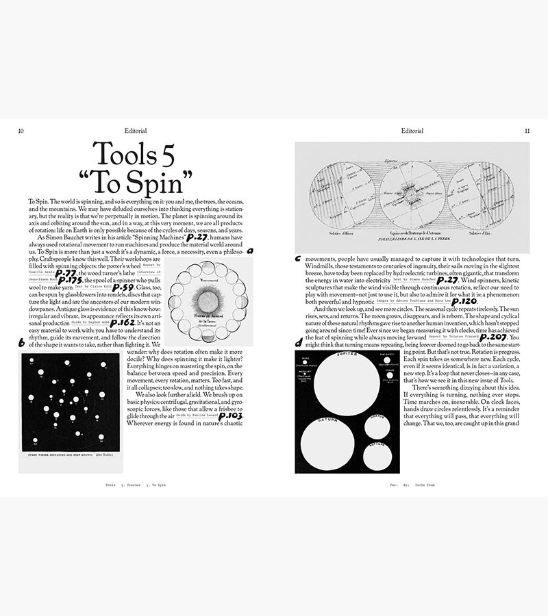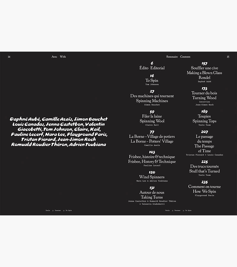 Tools Magazine N5 - To Spin : Tools magazine is an annual publication which seeks to promote and decipher the techniques and know-how of manufacturing in art, design, architecture of interior, industry or even crafts. Each issue is devoted to a particular manufacturing technique (molding, folding, etc.) which guides the selection of subjects, pieces and interviewed personalities.