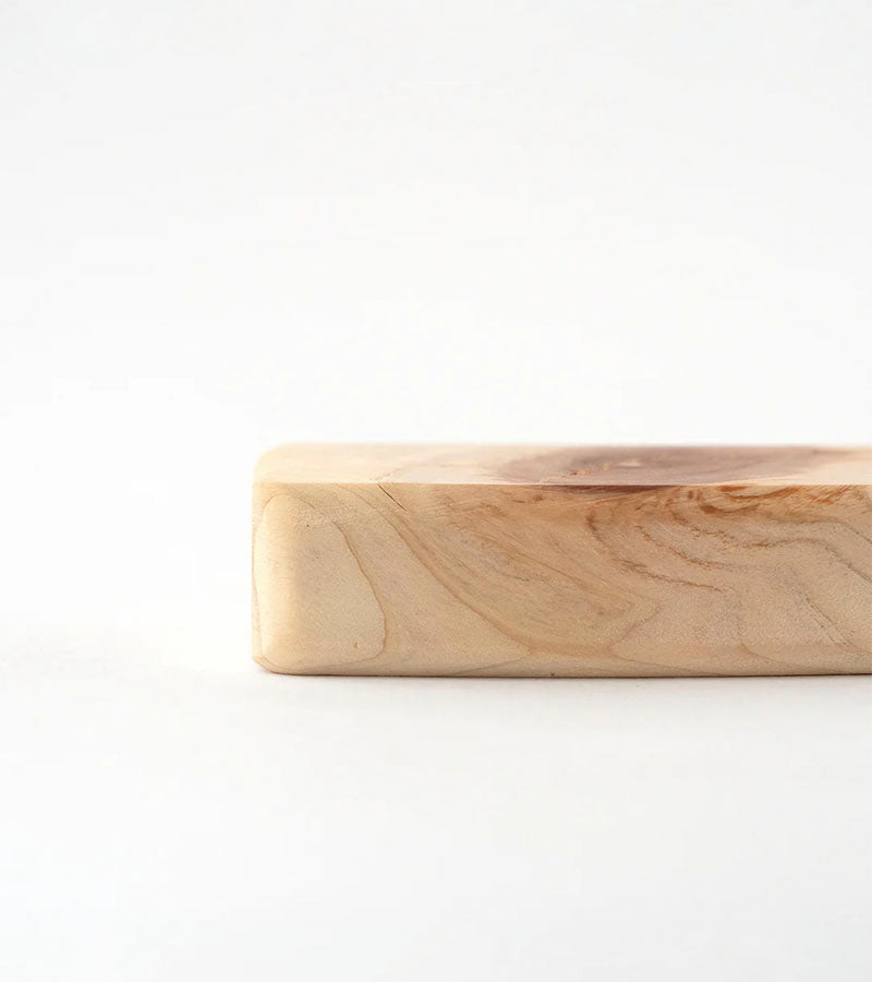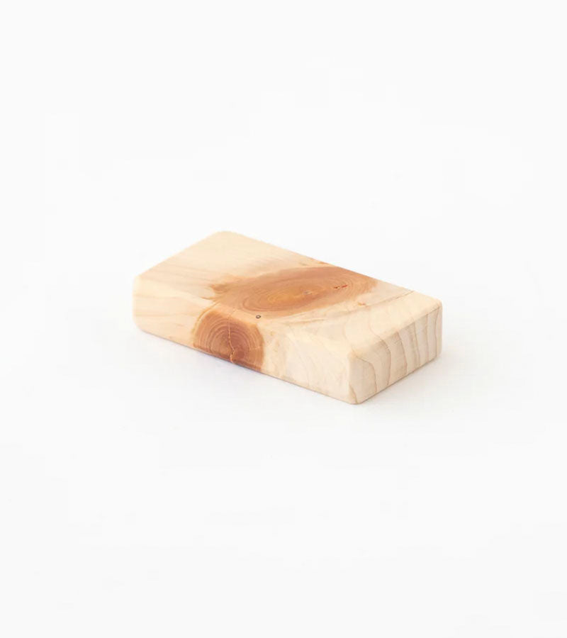 The Aroma Block from Tosaryu is crafted from Shimanto Hinoki, a Japanese cypress renowned for its natural antibacterial and antifungal properties. Made using sustainable methods in Kochi Prefecture, the block makes use of live knots left over from the production of Tosaryu’s cutting boards, ensuring that no material goes to waste. Rich in hinoki oil, it releases a refreshing forest-like fragrance that can be enjoyed in everyday spaces. Placed in a drawer, room, or even soaked in a warm bath, the Aroma Block fills the air with the calming and restorative scent of hinoki.