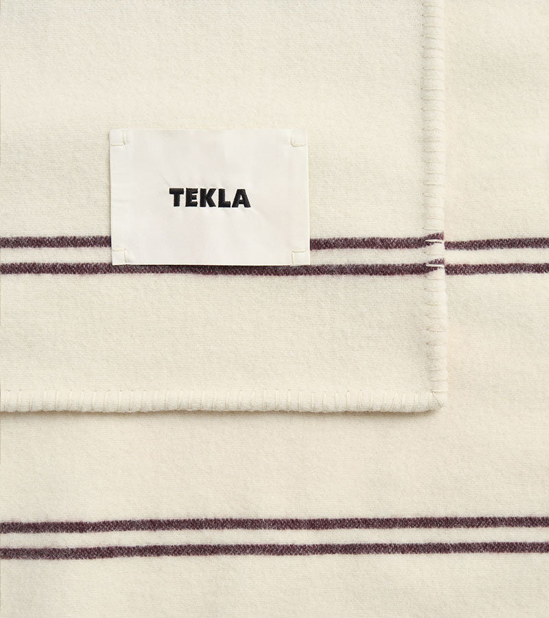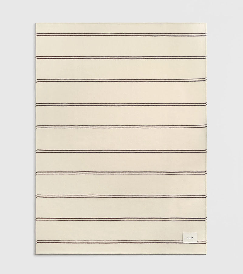 The Lambswool Blanket Ruck Stripes from Tekla Fabrics is made of responsibly sourced lambswool and finished with whipstitching. Soft lambswool is woven in a tight weave and lightly brushed to balance lightness with durability.