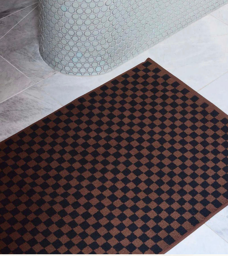 The Beppu Bath Mat Tabac & Noir from Baina is made from 100% organic cotton and luxuriously soft. Featuring Baina’s signature playful checkerboard print, it brings a sense of luxury and heritage to your bathroom.