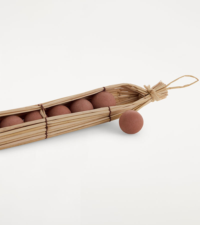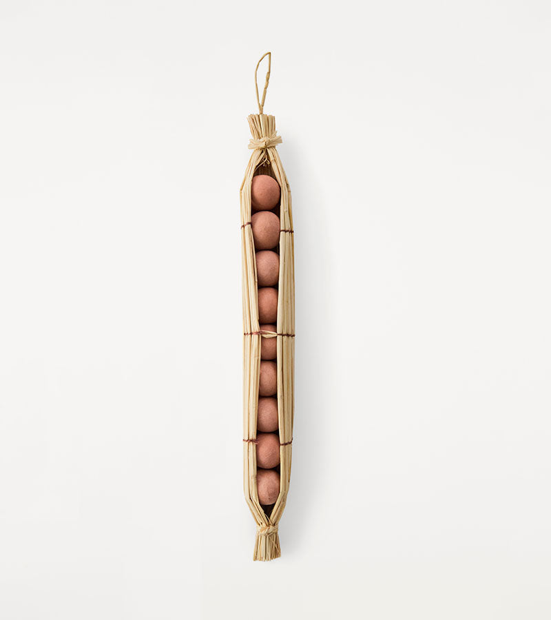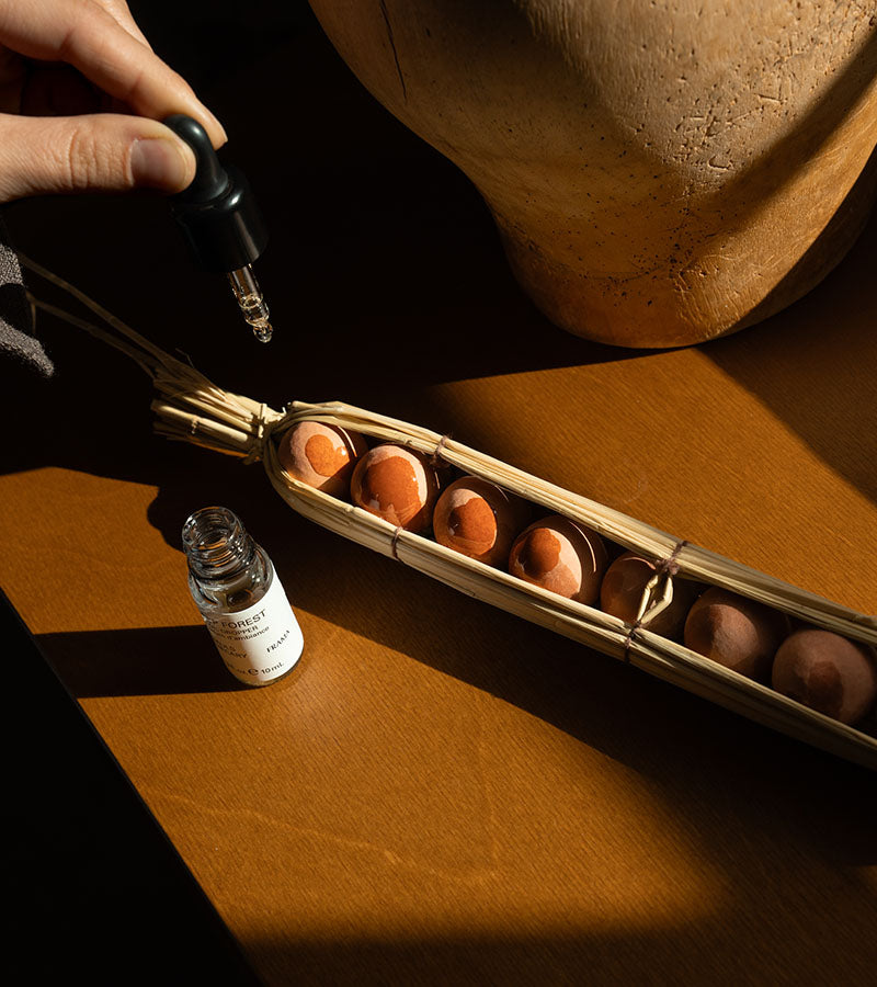 The From Soil to Form Chuseok from Frama is a natural oil diffuser containing nine red spheres made from Korean soil. The latest edition, the Chuseok Diffuser made in collaboration with Seoul-based studio Be My Guest, is inspired by the autumn harvest festival celebrated in South Korea—and accompanied by a rice straw case meticulously handwoven by master artisan Seokbong Choi.