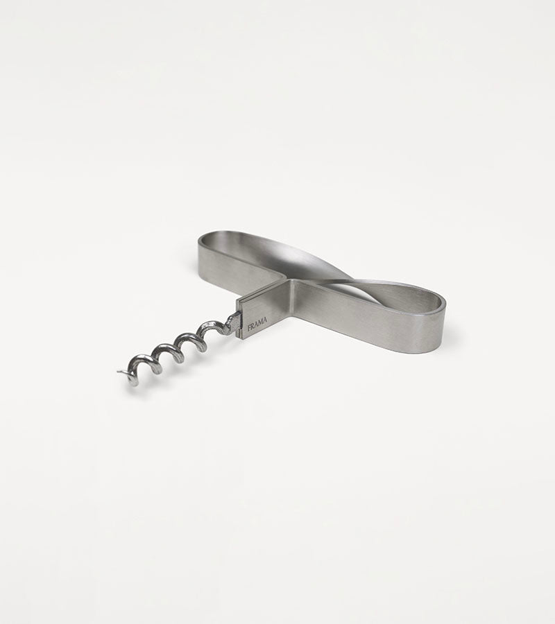The Ground Corkscrew from Frama is formed from a single length of stainless steel. Its refined twist creates a natural, ergonomic grip, ensuring a seamless uncorking experience.